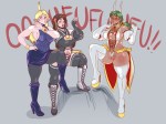 My half of the art trade with @wholewheatjamart! I chose to draw his elf princess gal, Fi! I drew her doing some facesitting while spouting about her greatness, which is probably pretty on-brand. I also did another drawing, like wholewheat, with her interacting with my OC’s.  And honestly, after having some chocolate, and lados with Kyo and Talim, I imagine they would start talking about how fabulous they all are and have a good ol’ oujo laugh party.