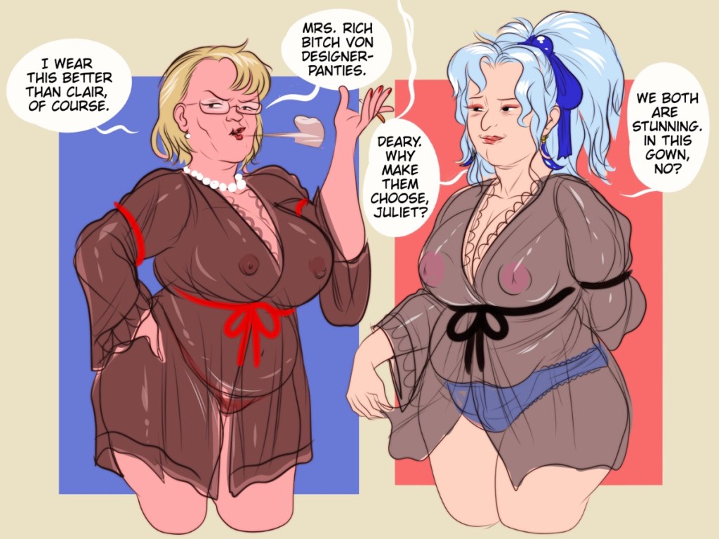 Aunt Juliet tries the GILF meme gown on for size. Her and Clair have big Golden Girls energy.